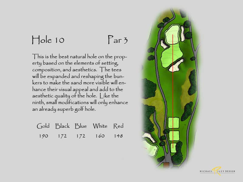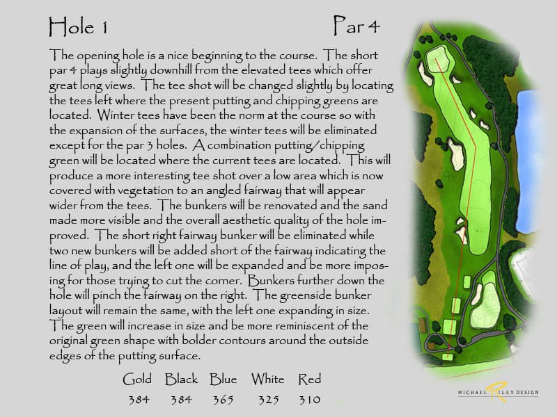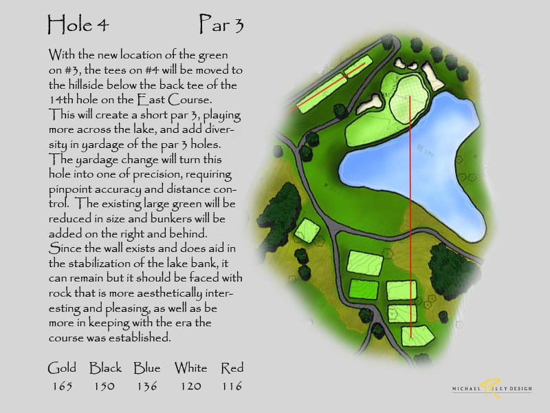 Plus, it will be difficult to add yardage with the present hole configuration. In order to make an impact, significant changes would need to be made to the routing and the grading of the site. Again, all this comes at a high cost that may still not be enough to produce the desired balance of play. This would only occur if the course was considered the equal of the West, something that will be difficult to achieve.